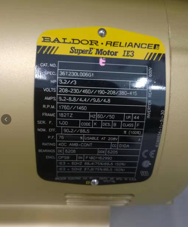 產(chǎn)品介紹:葆德( Baldor)電機,原為美國保德電機(Baldor ),曾一度叫做巴杜電機,成立于1920年,是一家美國的上市公司。2007年并購了羅克韋爾自動化旗下的瑞恩電氣(Reliance Electric)和道奇(Dodge)兩個品牌(全稱葆德·道奇·瑞恩 .DODGE.RELIANCE),成為北美**,***二大的工業(yè)電機供應商。